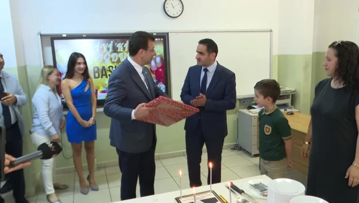 (İSTANBUL) – İstanbul Büyükşehir Belediye (İBB) Başkanı Ekrem İmamoğlu, geçtiğimiz 23 Nisan’da koltuğunu devrettiği ilkokul 3. sınıf öğrencisi Ali Selim Metli’nin talimatlarının yerine getirilip getirilmediğini yerinde inceledi. Metli ve sınıf arkadaşları, okullarını ziyarete gelen İmamoğlu’na doğum günü sürprizi yaptı. 53. yaş pastasını Metli ve arkadaşlarıyla birlikte kesen İmamoğlu, duygularını, “En güzel doğum günüm” sözleriyle dile getirdi.